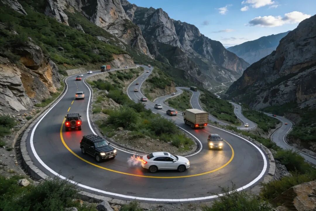 • 行经“怒江72拐”等盘山路时,提前鸣笛示意,紧盯路况不占道超车,与前车保持足够安全距离,弯道路段切勿盲目提速。