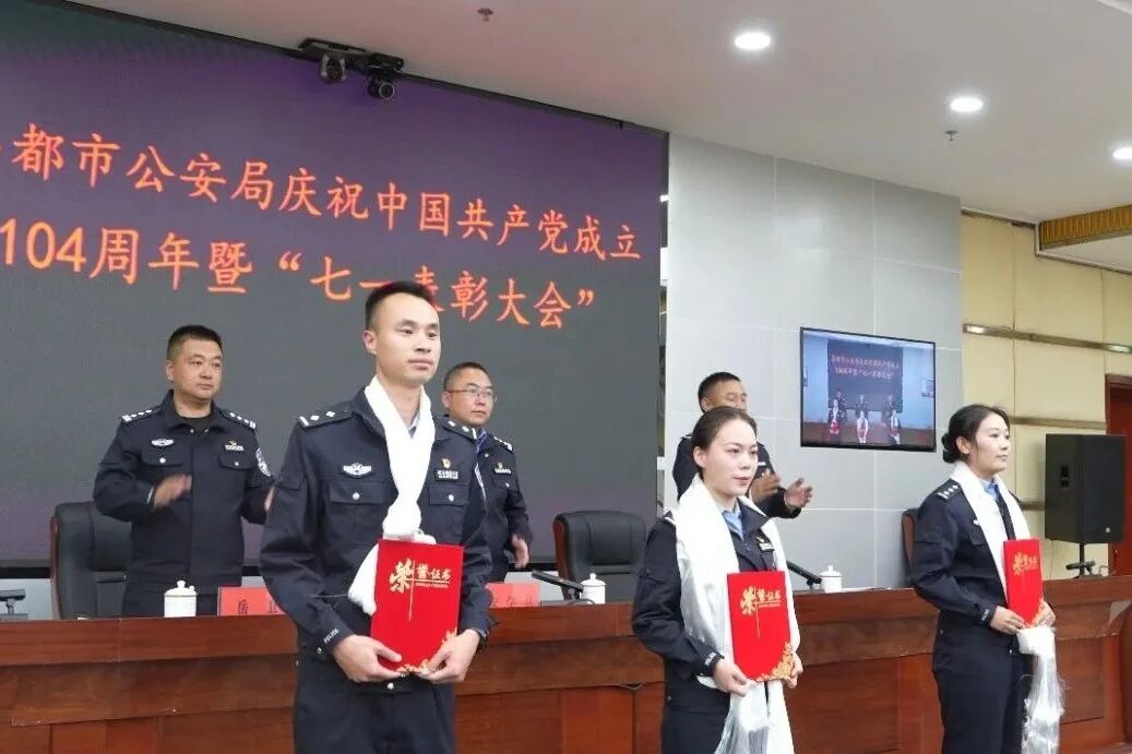 市公安局于2025年7月1日下午召开表彰大会。大会在庄严的国歌声中拉开序幕,随后全体党员民辅警起立,面对鲜红的党旗,高举右拳,在领誓人的带领下庄严宣誓。铿锵有力的誓言响彻现场,表达了昌都公安对党忠诚的坚定决心,进一步增强了党员的身份意识和责任意识,激励全体党员民辅警在新时代新征程上坚守初心、勇担使命。