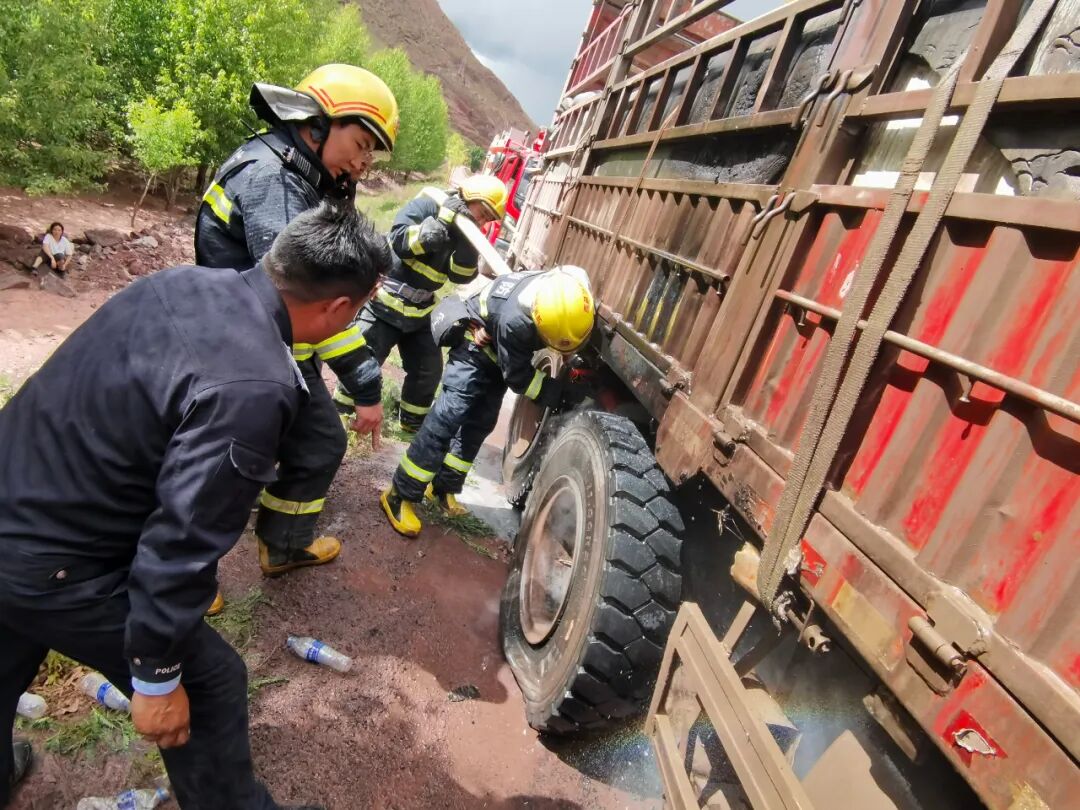 对货车轮胎、车厢等起火点进行精准扑救
