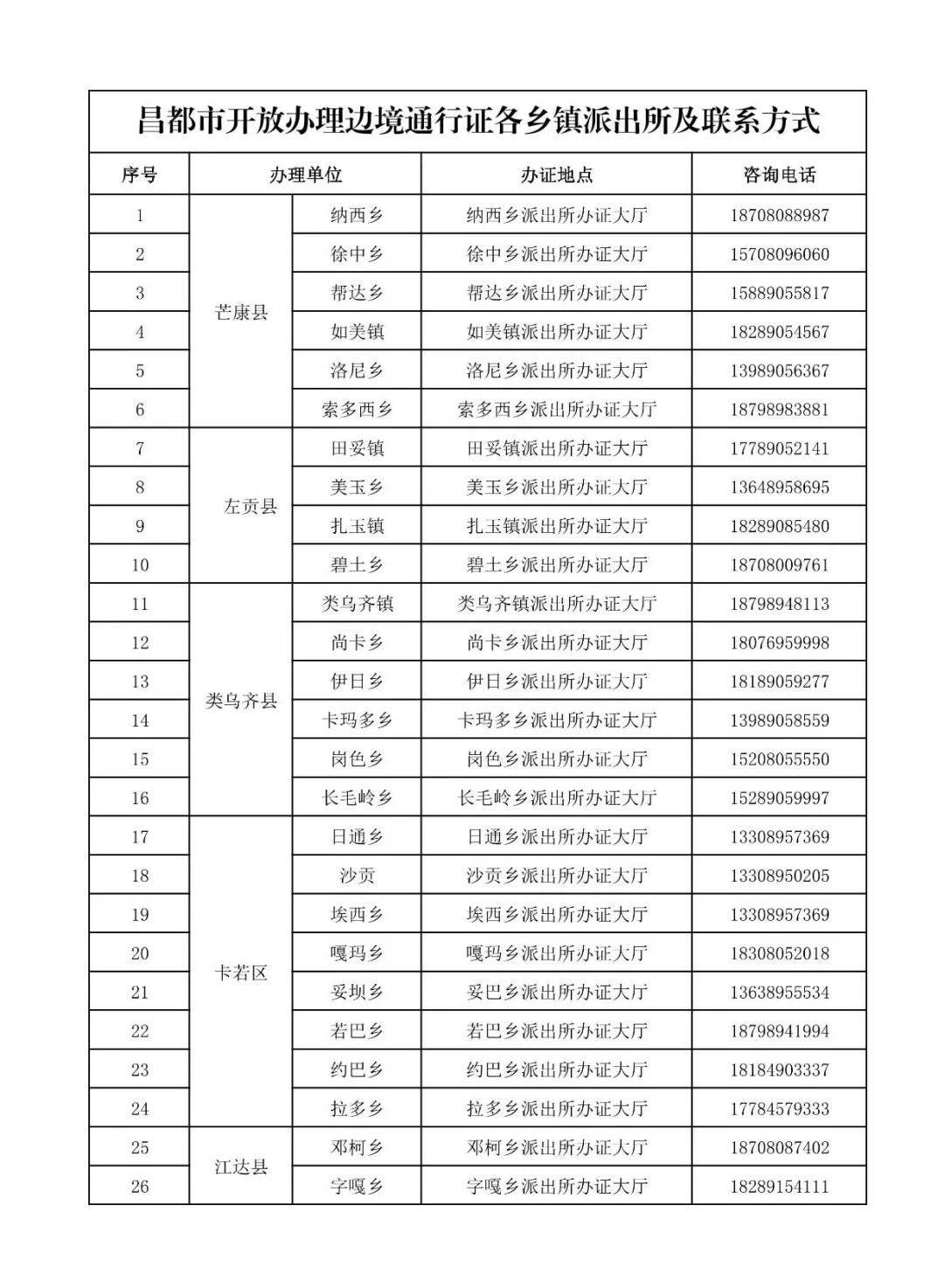 为进一步深化“放管服”改革,持续优化政务服务流程、提升服务质效,切实回应新形势下人民群众对公安工作的新期待、新要求,昌都市公安局决定下放边境通行证办理权限。现将有关事项公告如下: